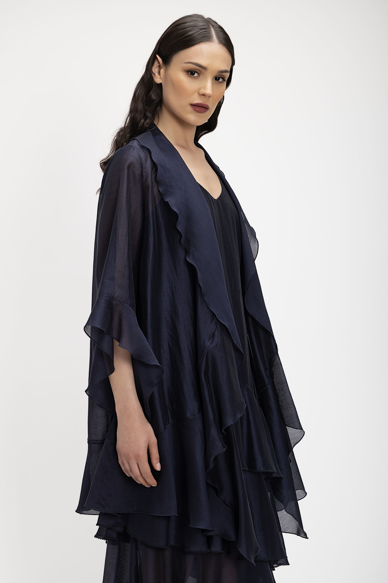 Αέρινη Τούνικ από Ημιδιάφανο Ύφασμα με Διαδοχικά Βολάν 006 μπλε