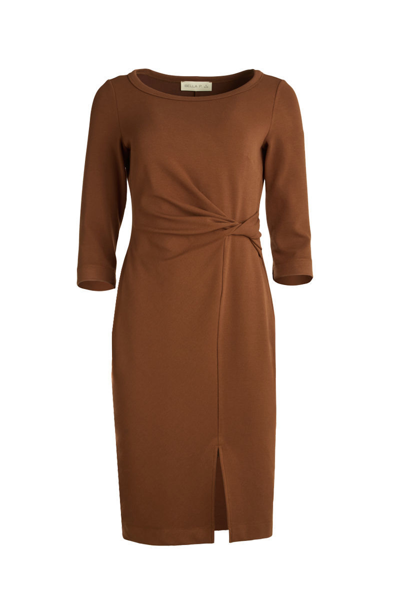 Κομψό φόρεμα από ελαστικό ύφασμα που αγκαλιάζει απαλά τη σιλουέτα, προσφέροντας άνεση και θηλυκότητα. Διαθέτει ντραπέ σχέδιο στη μέση που κολακεύει τη γραμμή και μικρό άνοιγμα στο μπροστινό μέρος για διακριτική κίνηση. Ιδανική επιλογή για κομψές εμφανίσεις από το πρωί έως το βράδυ.