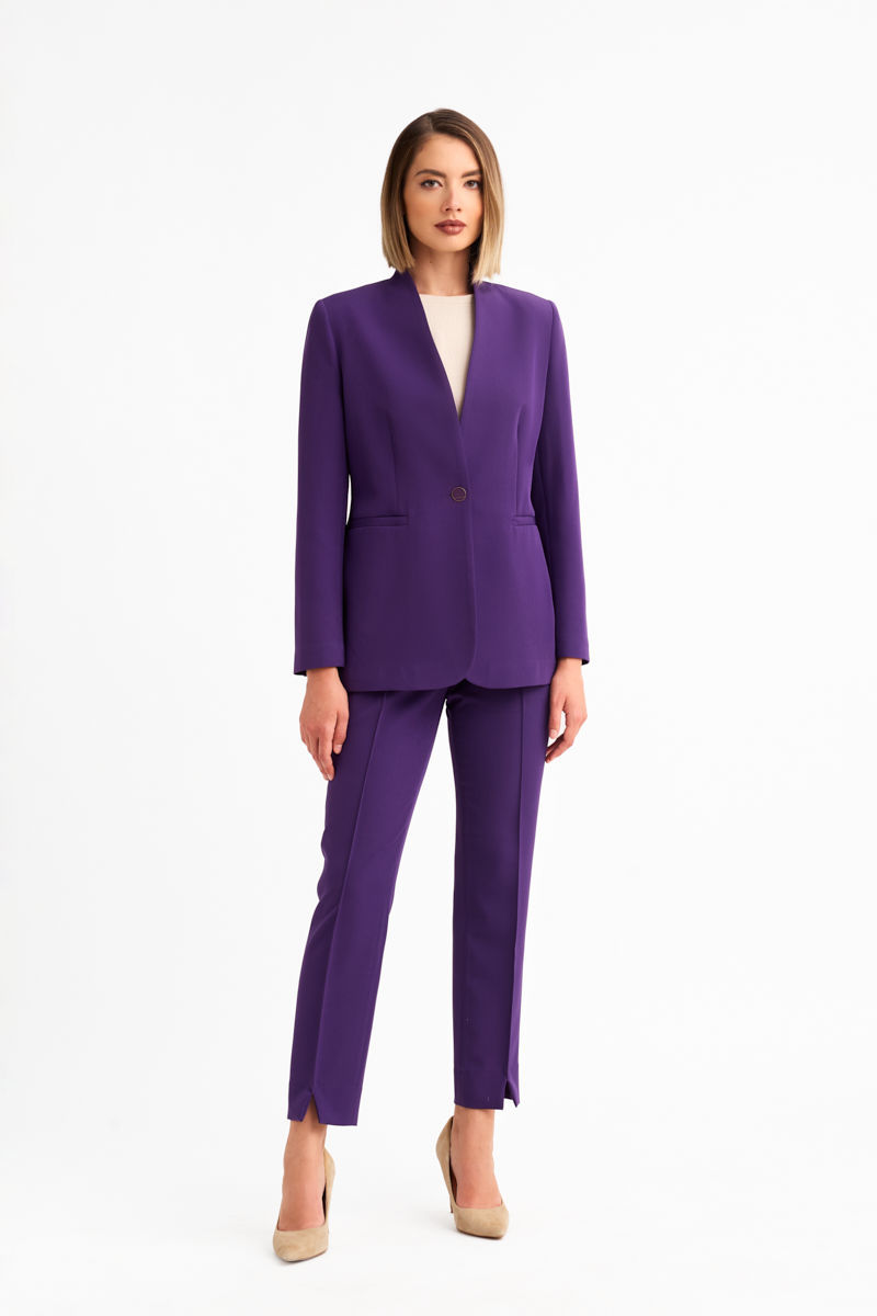 Κομψό σακάκι από ελαστικό κρεπ ύφασμα με εξαιρετική εφαρμογή. Διαθέτει όρθιο γιακά και κλείνει με ένα κουμπί μπροστά, αναδεικνύοντας τη γυναικεία σιλουέτα με διακριτική φινέτσα. Το minimal design του το καθιστά ιδανικό για επαγγελματικές ή πιο formal εμφανίσεις. Συνδυάζεται άψογα με παντελόνια ή φούστες της συλλογής για ένα ολοκληρωμένο και εκλεπτυσμένο look.