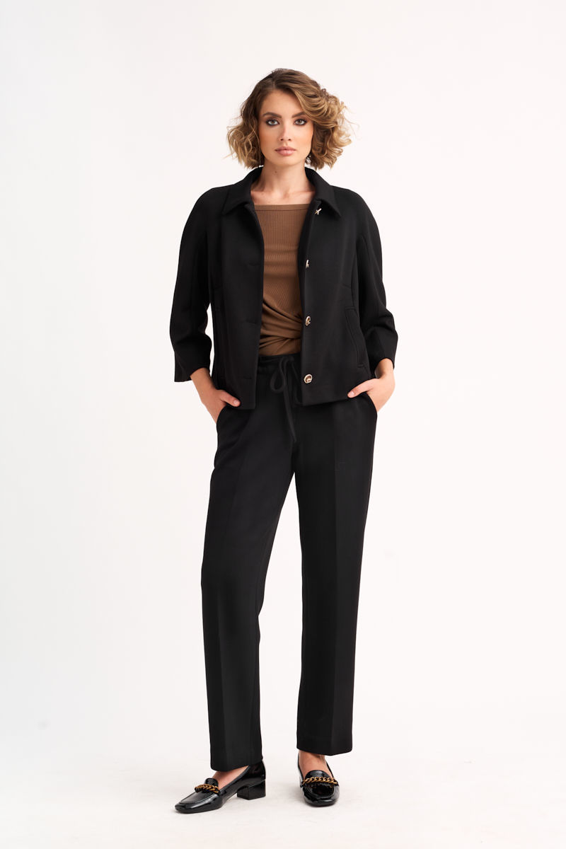 Κοντό σακάκι από τύπου scuba με απαλή αφή με ίσια γραμμή και χαλαρή εφαρμογή. Διαθέτει κλασικό γιακά, υπέροχα κουμπιά στο μπροστινό μέρος και τονισμένες ραφές στα στριφώματα είναι τονισμένες με εξώραφο για διακριτική αλλά ιδιαίτερη λεπτομέρεια στα μανίκια. Ένα μοντέρνο κομμάτι που συνδυάζει άνεση και στυλ, ιδανικό τόσο για casual όσο και για πιο επίσημες εμφανίσεις. Συνδυάζεται αρμονικά με το παντελόνι της ίδιας σειράς.