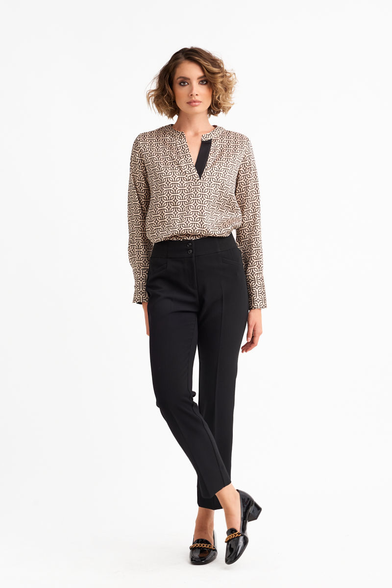Παντελόνι από άριστης ποιότητας κρεπ ελαστικό ύφασμα, με φαρδύ λάστιχο στη μέση στο ίδιο χρώμα για άνεση και τέλεια εφαρμογή. Διαθέτει φιλέτα διακοσμητικά εμπρός και πίσω, καθώς και διακριτικά ανοίγματα στο τελείωμα της πλαϊνής ραφής. Ένα κομψό και θηλυκό κομμάτι που αγκαλιάζει τη σιλουέτα και αναδεικνύει τη γυναικεία γραμμή με διακριτική φινέτσα.