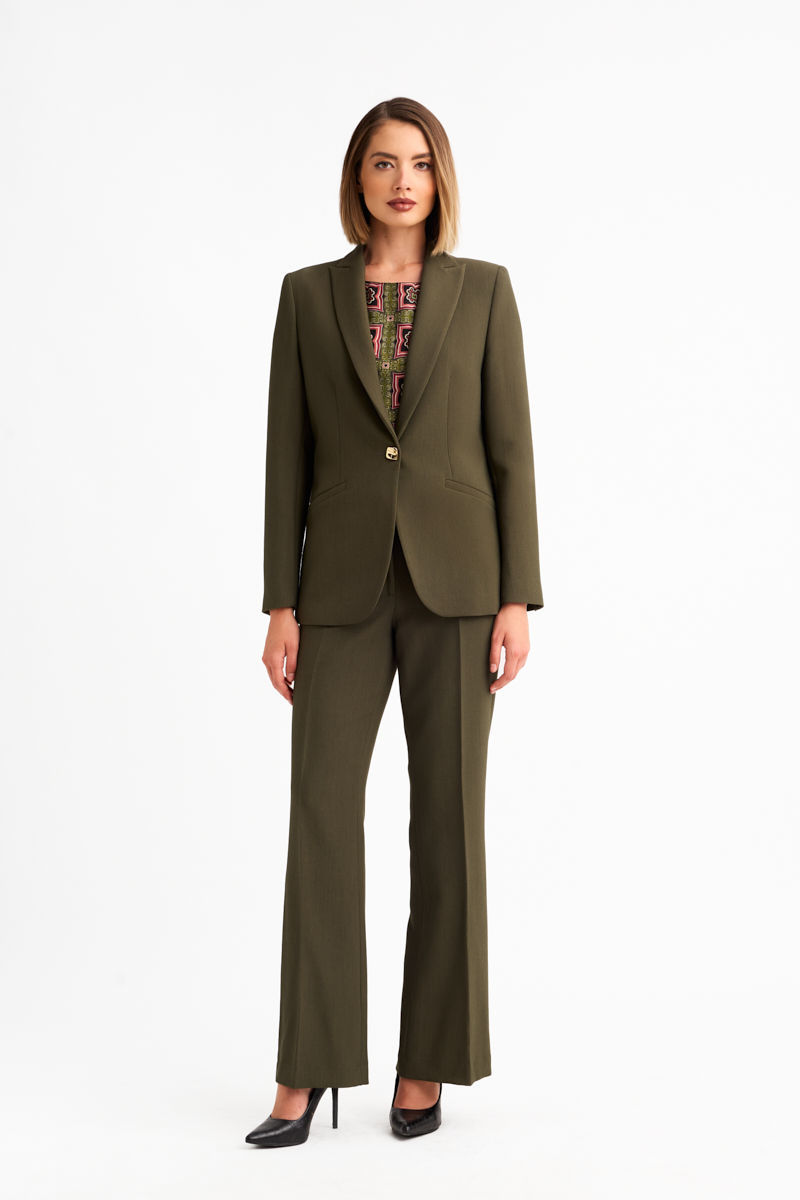 Κομψό σακάκι σε άριστης ποιότητας κρεπ ελαστικό ύφασμα, με ίσια γραμμή και άψογη εφαρμογή. Διαθέτει ένα κουμπί μπροστά, φίνο πέτο και φιλέτα τσέπες. Η εσωτερική μόστρα διακοσμείται με ρέλι, ενώ στη φόδρα υπάρχει πρακτικό τσεπάκι για το κινητό. Συνδυάζεται ιδανικά με το παντελόνι από το ίδιο ύφασμα ή με άλλα κρεπ κομμάτια της συλλογής για ένα ολοκληρωμένο, elegant σύνολο.