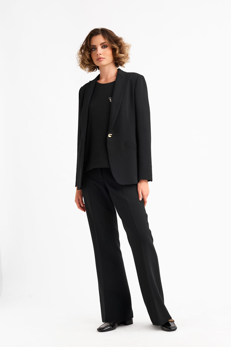 Κομψό σακάκι σε άριστης ποιότητας κρεπ ελαστικό ύφασμα, με ίσια γραμμή και άψογη εφαρμογή. Διαθέτει ένα κουμπί μπροστά, φίνο πέτο και φιλέτα τσέπες. Η εσωτερική μόστρα διακοσμείται με ρέλι, ενώ στη φόδρα υπάρχει πρακτικό τσεπάκι για το κινητό. Συνδυάζεται ιδανικά με το παντελόνι από το ίδιο ύφασμα ή με άλλα κρεπ κομμάτια της συλλογής για ένα ολοκληρωμένο, elegant σύνολο.