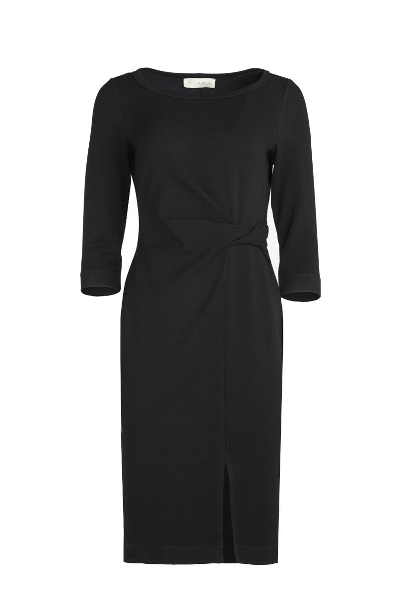Κομψό φόρεμα από ελαστικό ύφασμα που αγκαλιάζει απαλά τη σιλουέτα, προσφέροντας άνεση και θηλυκότητα. Διαθέτει ντραπέ σχέδιο στη μέση που κολακεύει τη γραμμή και μικρό άνοιγμα στο μπροστινό μέρος για διακριτική κίνηση. Ιδανική επιλογή για κομψές εμφανίσεις από το πρωί έως το βράδυ.