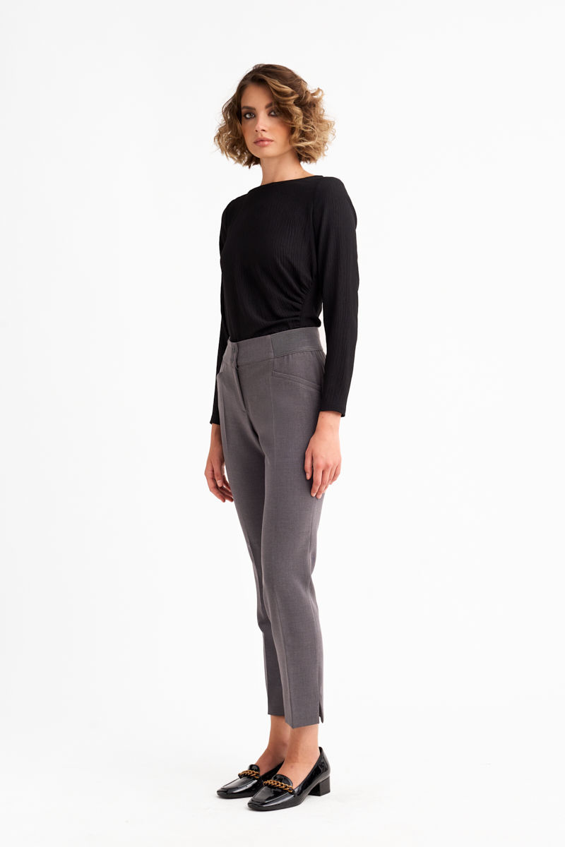 Παντελόνι από άριστης ποιότητας κρεπ ελαστικό ύφασμα, με φαρδύ λάστιχο στη μέση στο ίδιο χρώμα για άνεση και τέλεια εφαρμογή. Διαθέτει φιλέτα διακοσμητικά εμπρός και πίσω, καθώς και διακριτικά ανοίγματα στο τελείωμα της πλαϊνής ραφής. Ένα κομψό και θηλυκό κομμάτι που αγκαλιάζει τη σιλουέτα και αναδεικνύει τη γυναικεία γραμμή με διακριτική φινέτσα.
