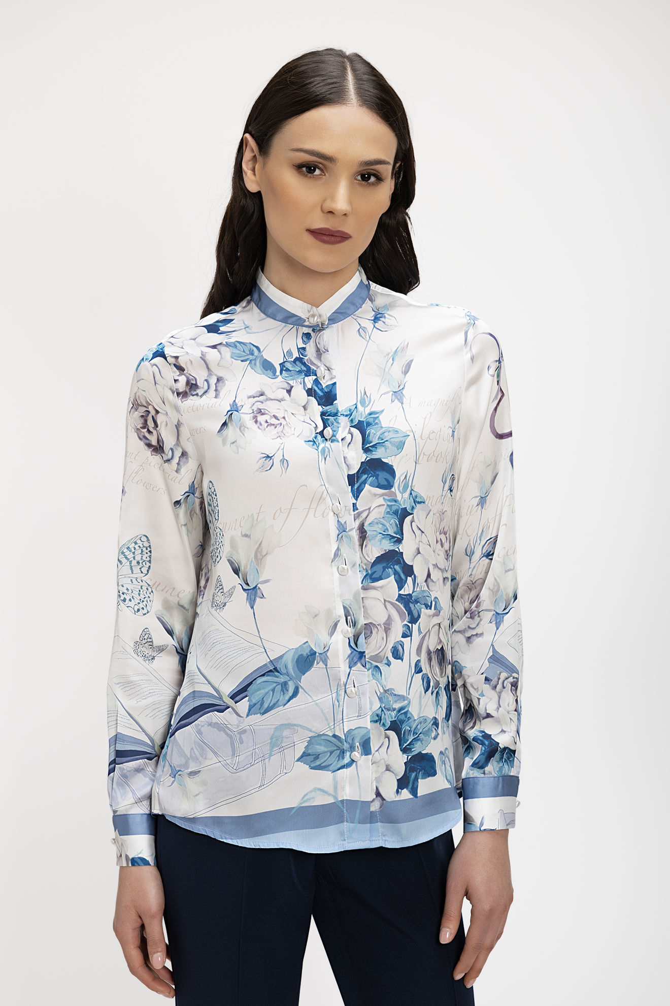 Πουκάμισο με μάο γιακά σε Foulard Print σιελ